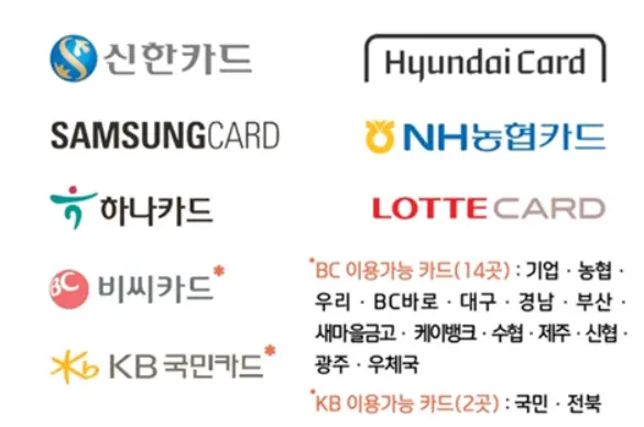 | 기업은행·우리은행 | BC계열 제휴 카드만 가능 | BC계열 제휴 카드만 가능 |