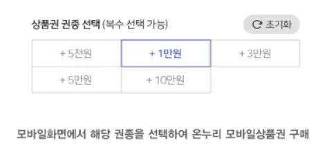 모바일 상품권 종류는 5천원, 1만원, 3만원, 5만원, 10만원 권이 있습니다.