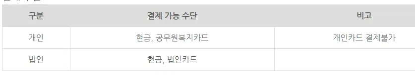 그러나 공무원복지카드나 법인카드는 결제가 가능합니다.